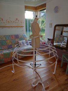 Décider du nombre de cerceaux en fonction de la hauteur de la crinoline, mon mannequin étant grand, pas moins de 7 cerceaux devront être mis en place.