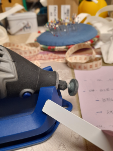 Les baleines : il vous faut des baleines en acier recouvertes de plastique blanc de 11 ou 12 mm de largeur. On peut en trouver dans différents commerces. Les miennes j’aime bien les acheter chez ALYSSE CREATIONS .
